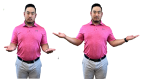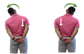 Begin in a sitting or standing position with upright posture. Turn your palms upwards, as if you were holding “soup bowls”, with your elbows at your sides. From there, rotate your arms outwards and squeeze your shoulder blades back. Return to the starting position, while maintaining the soup bowl position throughout the whole exercise. Perform 10-15 repetitions.